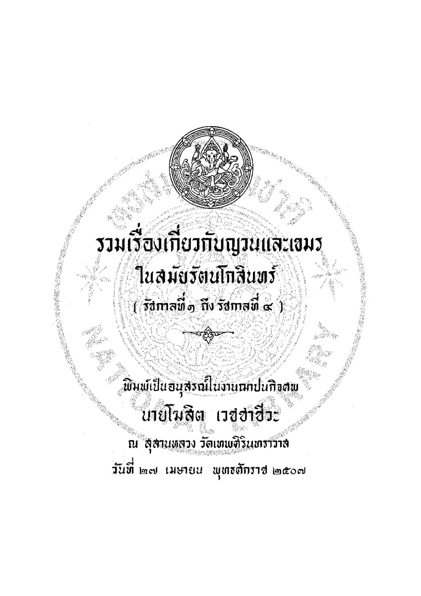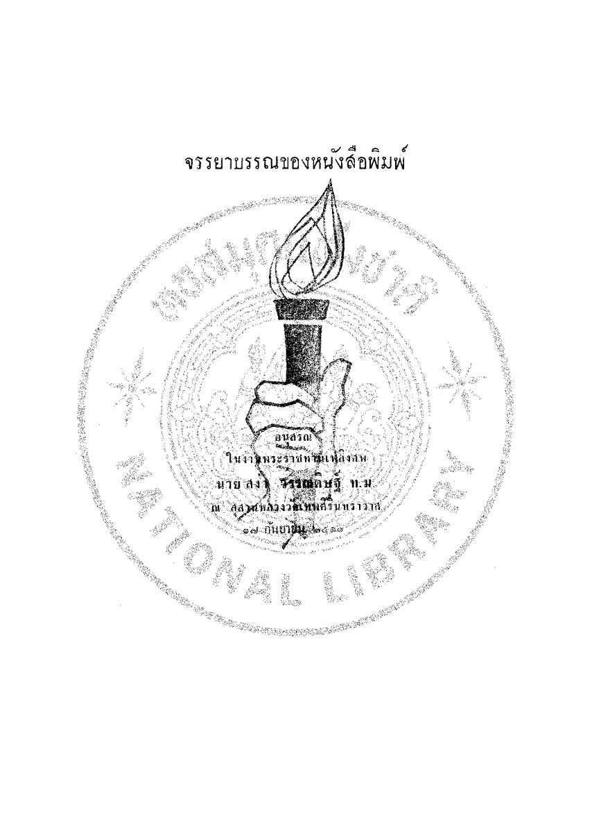 จัดพิมพ์เป็นอนุสรณ์ในงานฌาปนกิจศพ นางชุ่ม บงการอุบัตน์กิจ (ชุ่ม บงกชเกิด) ณ เมรุวัดชัยพฤกษมาลา ตลิ่งชัน ธนบุรี วันที่ 27 เมษายน 2506