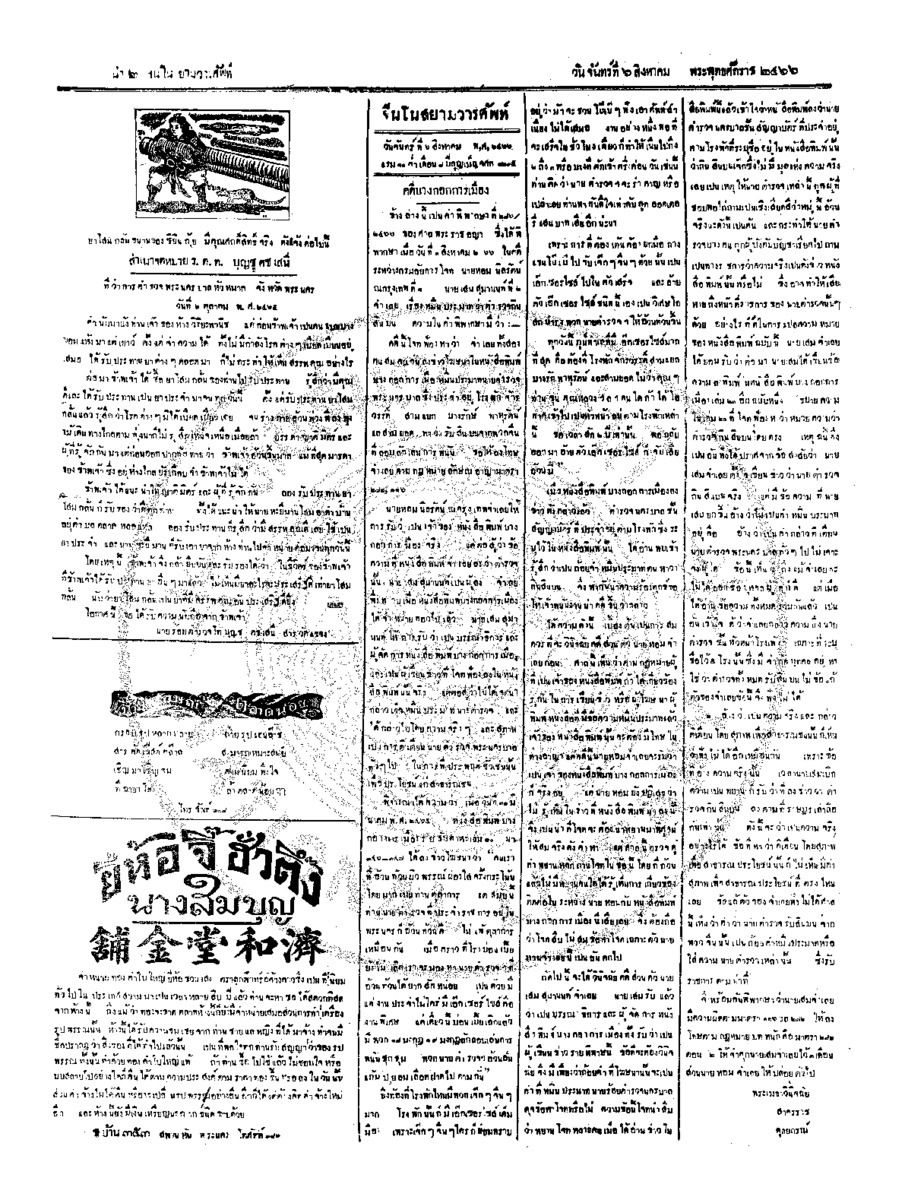 จีนโนสยามวารศัพท์ ฉบับที่ 109 วันจันทร์ที่ 6 สิงหาคม 2466