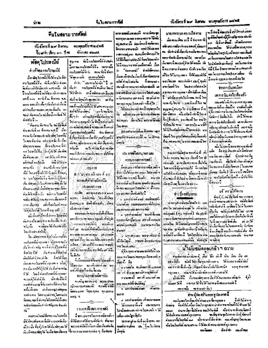 จีนโนสยามวารศัพท์ ฉบับที่ 108 วันอังคารที่ 29 สิงหาคม 2465