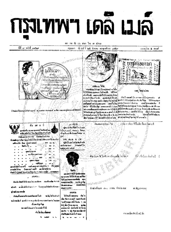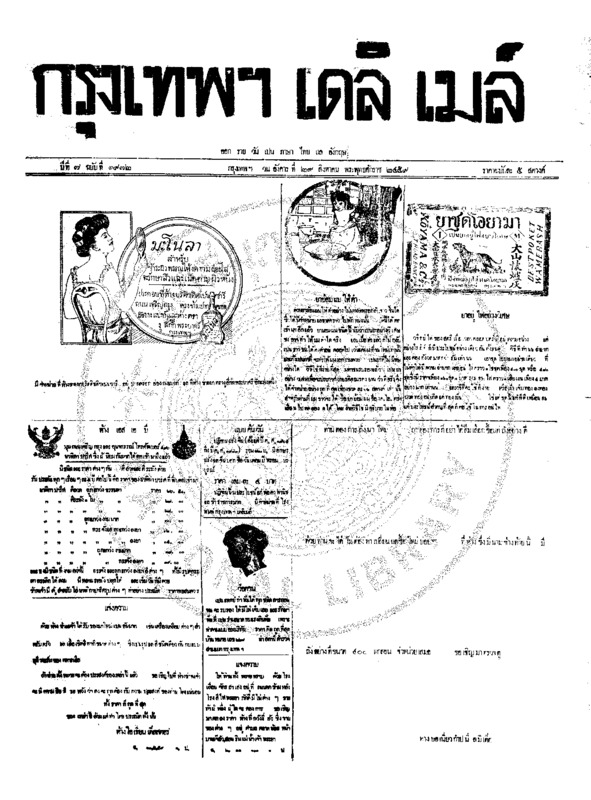 หนังสือพิมพ์กรุงเทพเดลิเมล์ ปีที่ 7 ฉบับที่ 1843 วันที่ 26 มีนาคม 2458