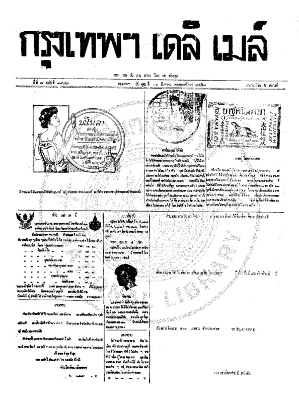 หนังสือพิมพ์กรุงเทพเดลิเมล์ ปีที่ 7 ฉบับที่ 1969 วันที่ 25 สิงหาคม 2459