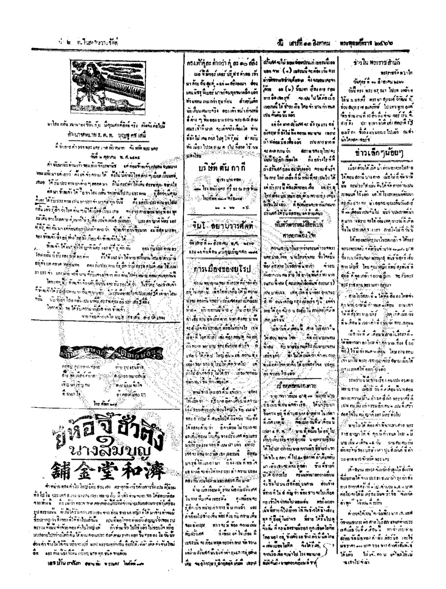 จีนโนสยามวารศัพท์ ฉบับที่ 112 วันพฤหัสบดีที่ 9 สิงหาคม 2466