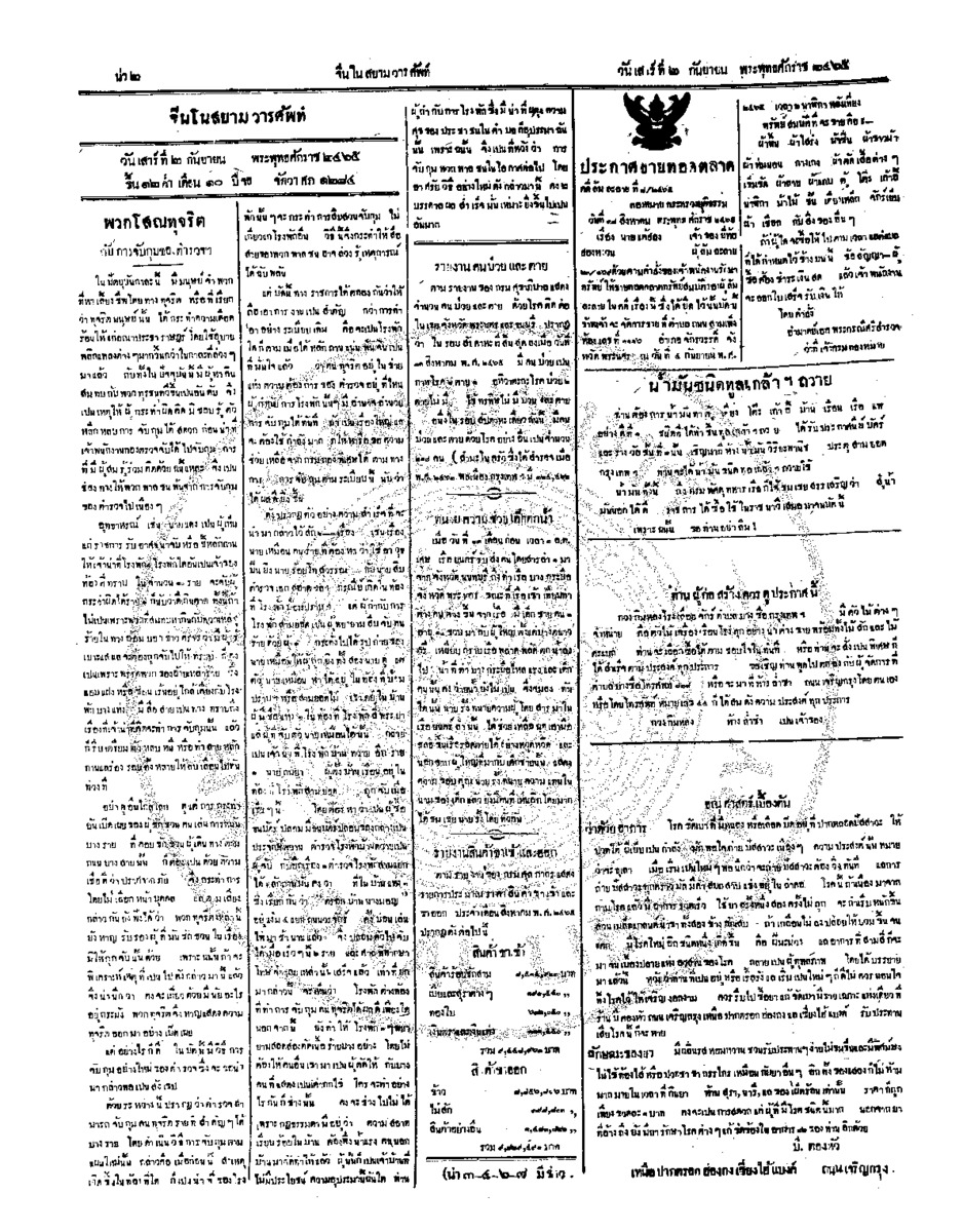 หนังสือพิพม์จีนโนสยามวารศัพท์ ฉบับที่ 112 วันศุกร์ที่ 17 สิงหาคม 2460