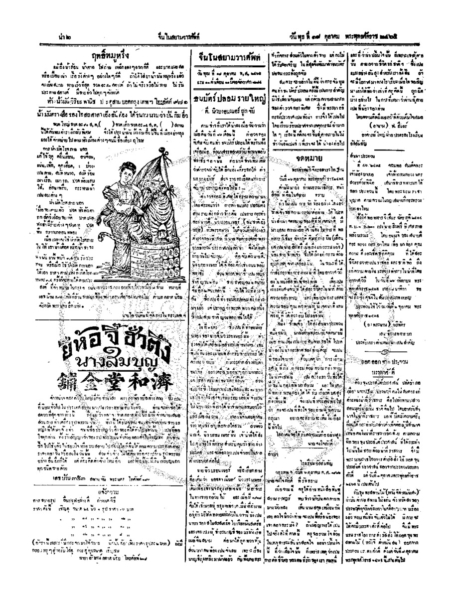 หนังสือพิมพ์จีนโนสยามวารศัพท์ ฉบับที่ 15 วันพฤหัสบดีที่ 18 เมษายน 2461