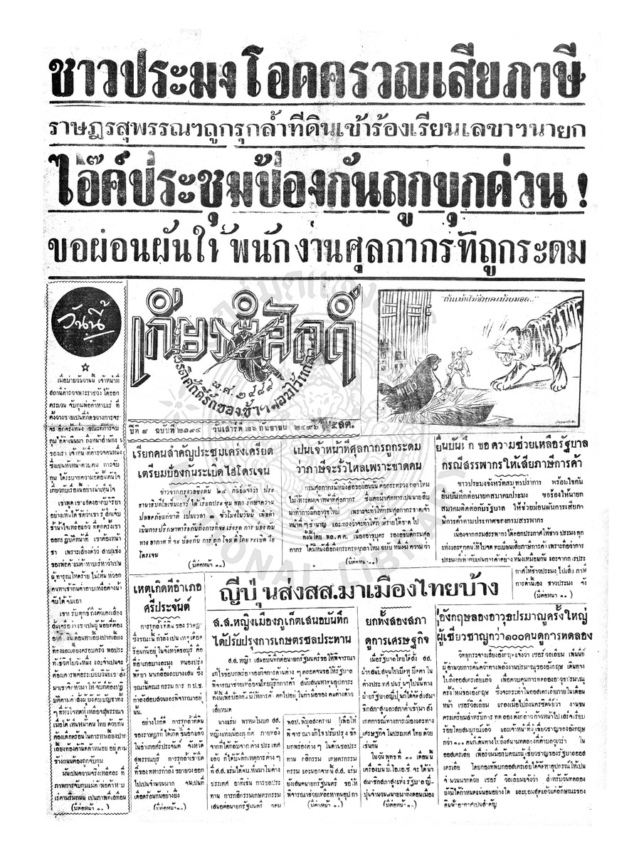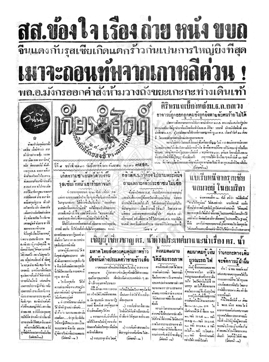 เกียรติศักดิ์ ฉบับที่ 2198 วันพฤหัสที่ 1 ตุลาคม 2496