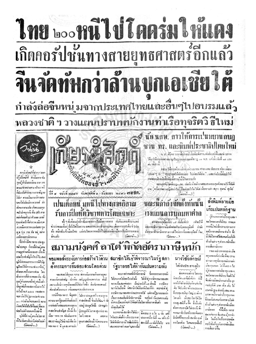 เกียรติศักดิ์ ฉบับที่ 2185 วันพุธที่ 16 กันยายน 2496