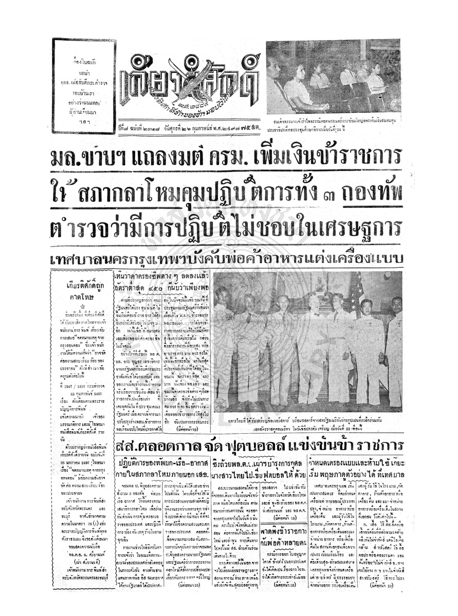 เกียรติศักดิ์ ฉบับที่ 2317 วันพฤหัสที่ 25 กุมภาพันธ์ 2497