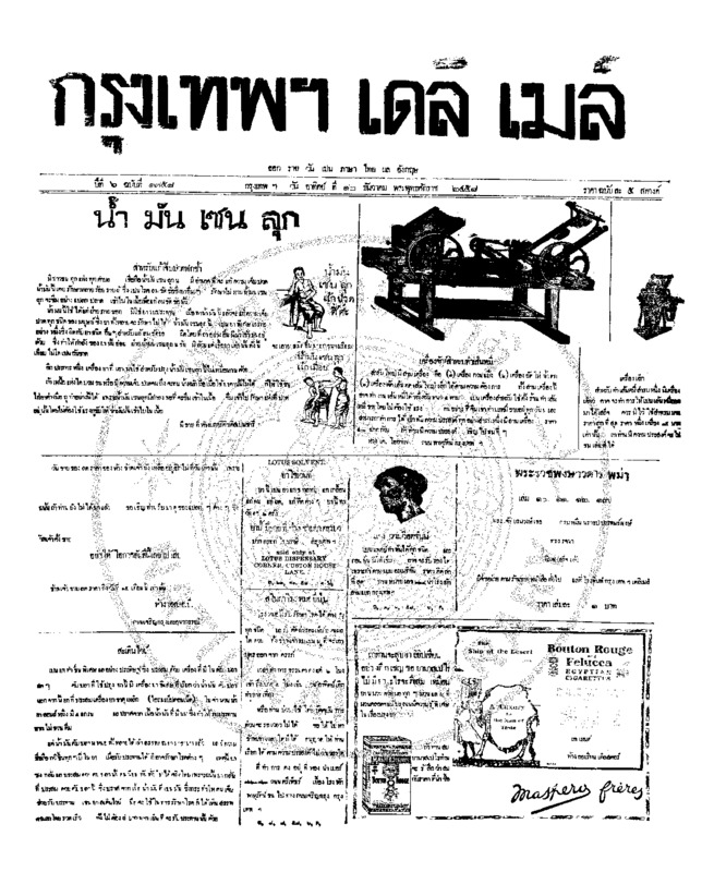 กรุงเทพเดลิเมล์ ปีที่ 6 ฉบับที่ 1754 วันที่ 8 ธันวาคม 2458