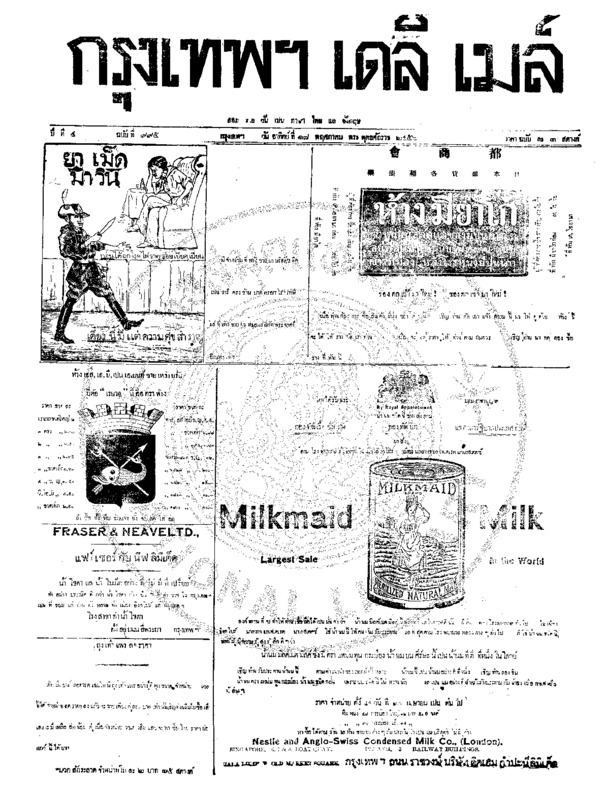 หนังสือพิมพ์กรุงเทพเดลิเมล์ ปีที่ 4 ฉบับที่ 995 วันที่ 18 พฤษภาคม 2456