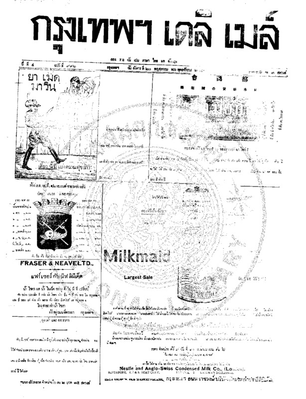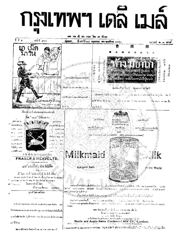 หนังสือพิมพ์กรุงเทพเดลิเมล์ ปีที่ 4 ฉบับที่ 991 วันที่ 14 พฤษภาคม 2456