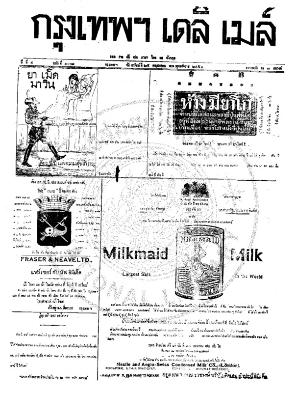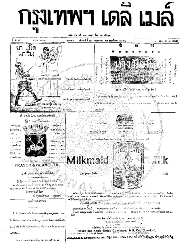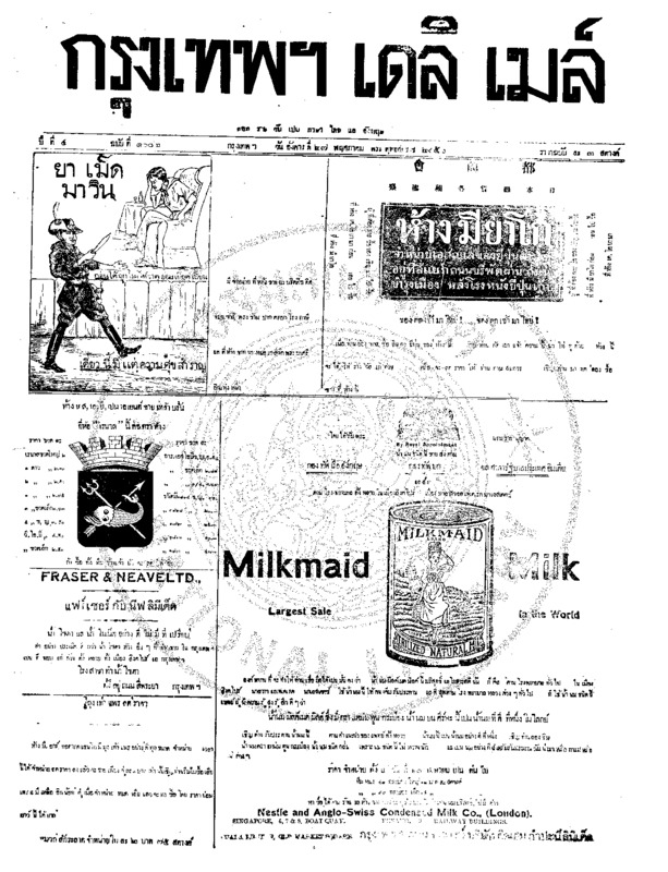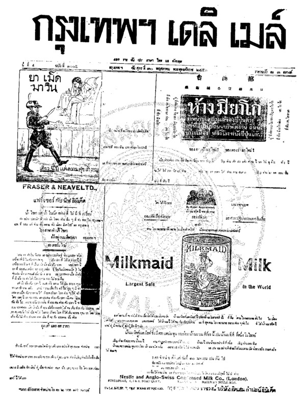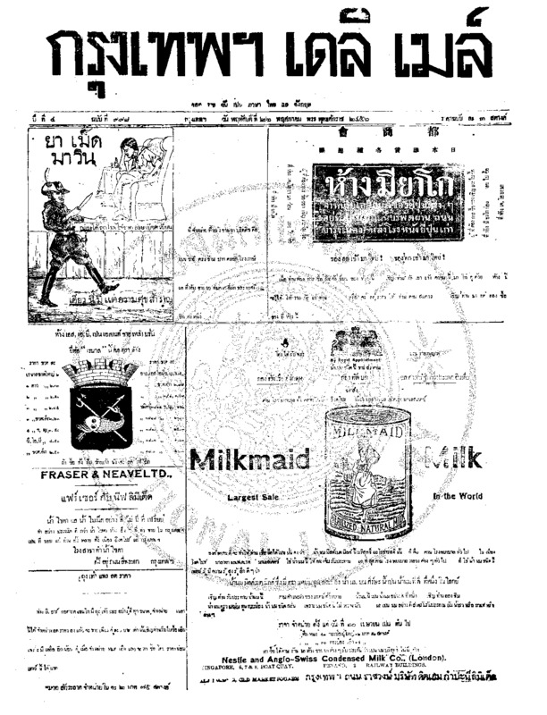 หนังสือพิมพ์กรุงเทพเดลิเมล์ ปีที่ 4 ฉบับที่ 1000 วันที่ 24 พฤษภาคม 2456