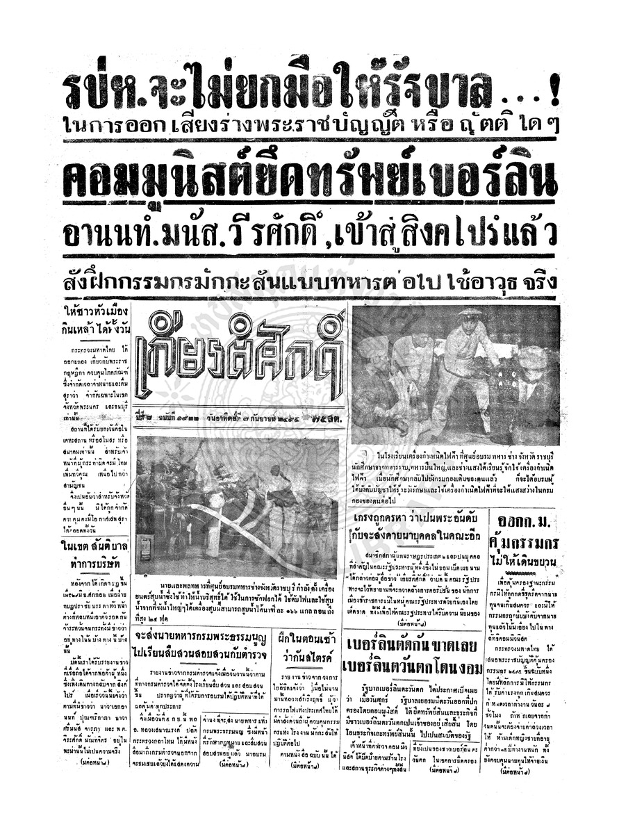 เกียรติศักดิ์ ฉบับที่ 1921 วันที่ 6 กันยายน 2495