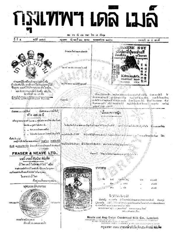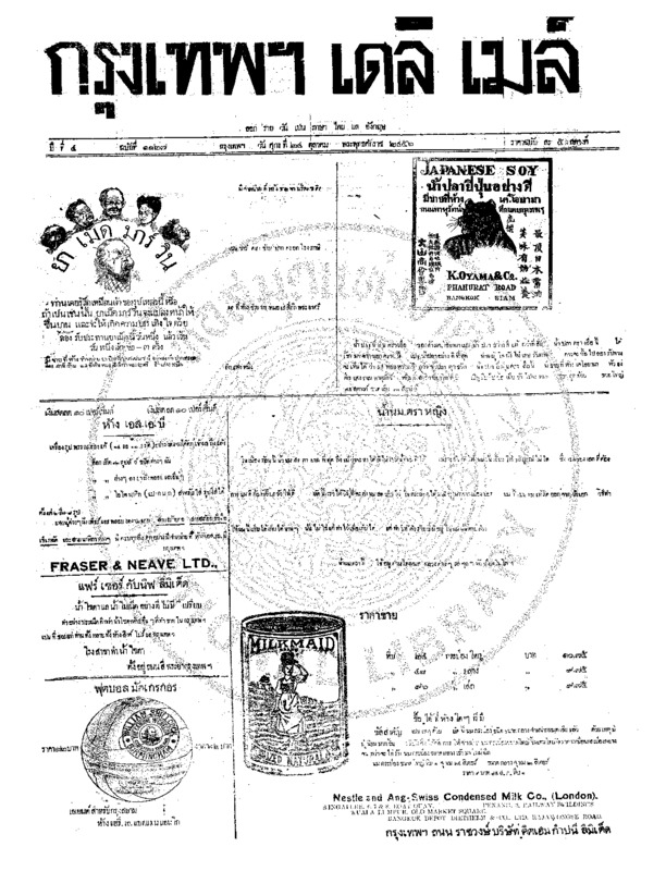 หนังสือพิมพ์กรุงเทพเดลิเมล์ ปีที่ 4 ฉบับที่ 1132 วันที่ 30 ตุลาคม 2456