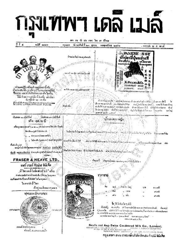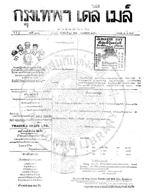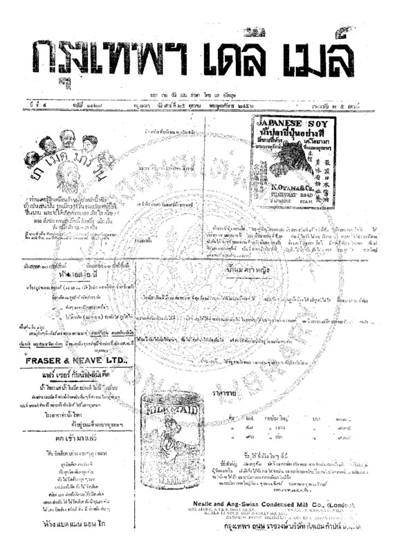 หนังสือพิมพ์กรุงเทพเดลิเมล์ ปีที่ 4 ฉบับที่ 1131 วันที่ 29 ตุลาคม 2456