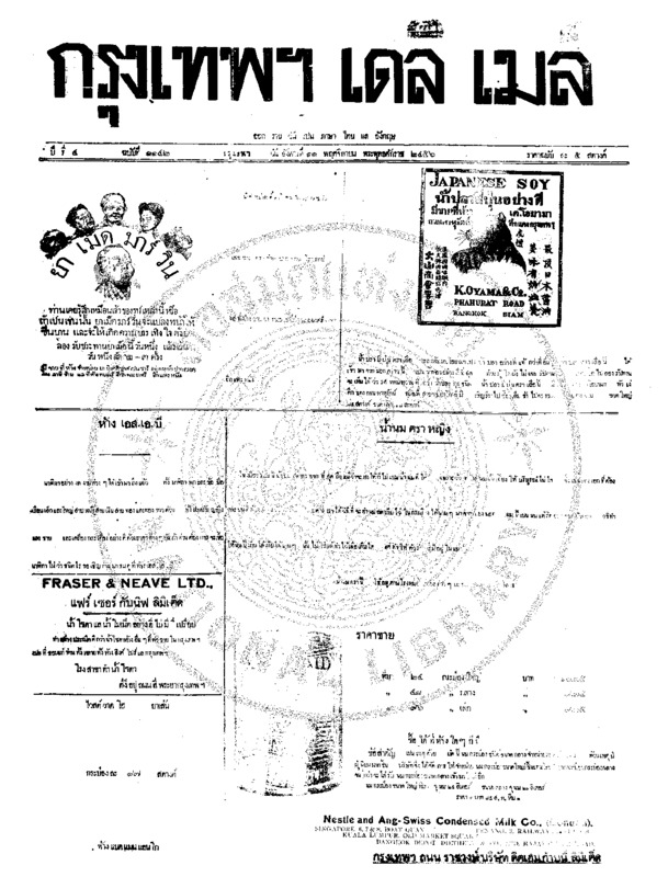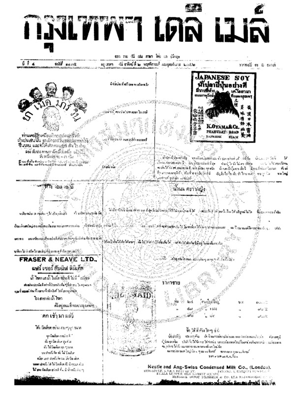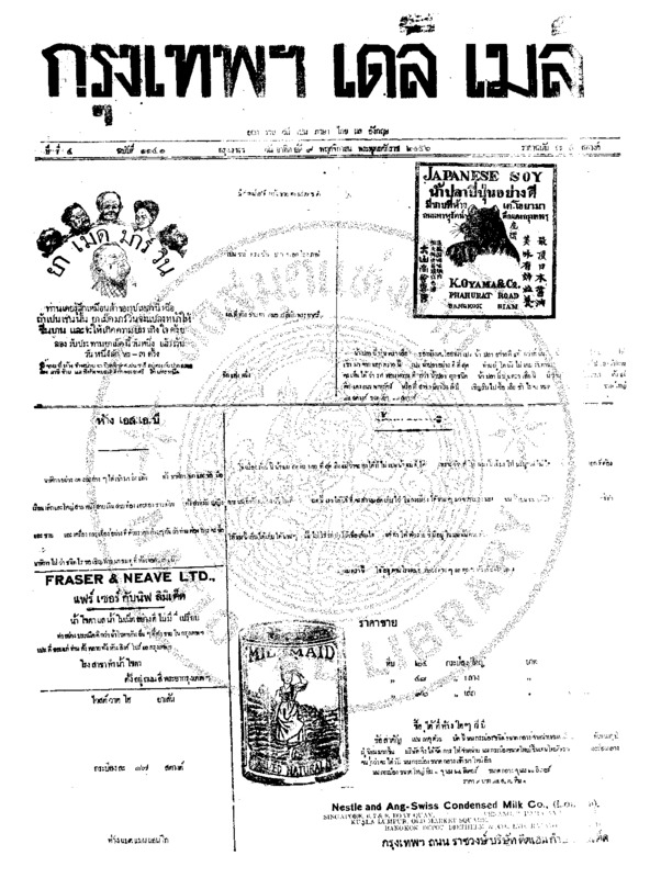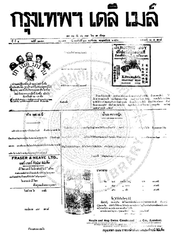 หนังสือพิมพ์กรุงเทพเดลิเมล์ ปีที่ 4 ฉบับที่ 1141 วันที่ 9 พฤศจิกายน 2456