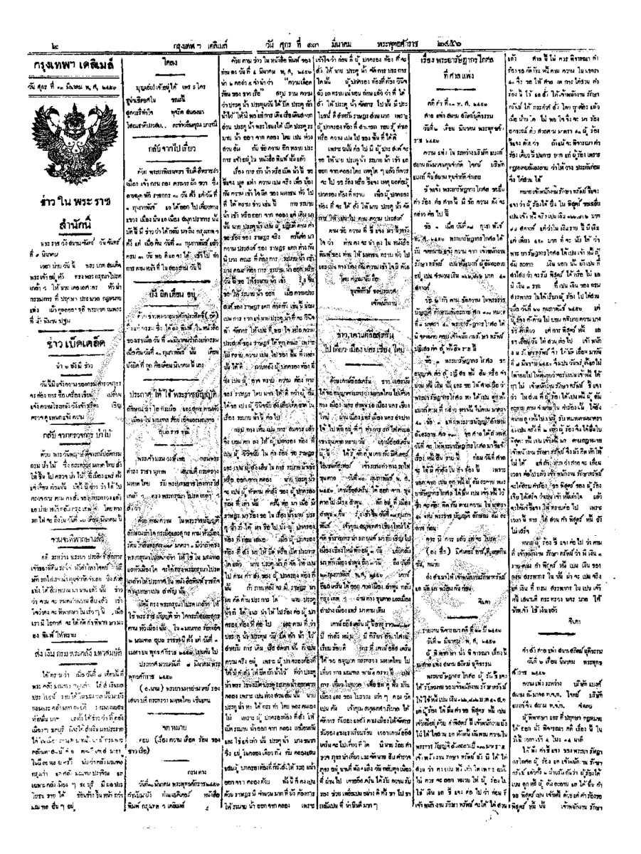 หนังสือพิมพ์กรุงเทพเดลิเมล์ ปีที่ 5 ฉบับที่ 1238 วันที่ 10 มีนาคม 2456