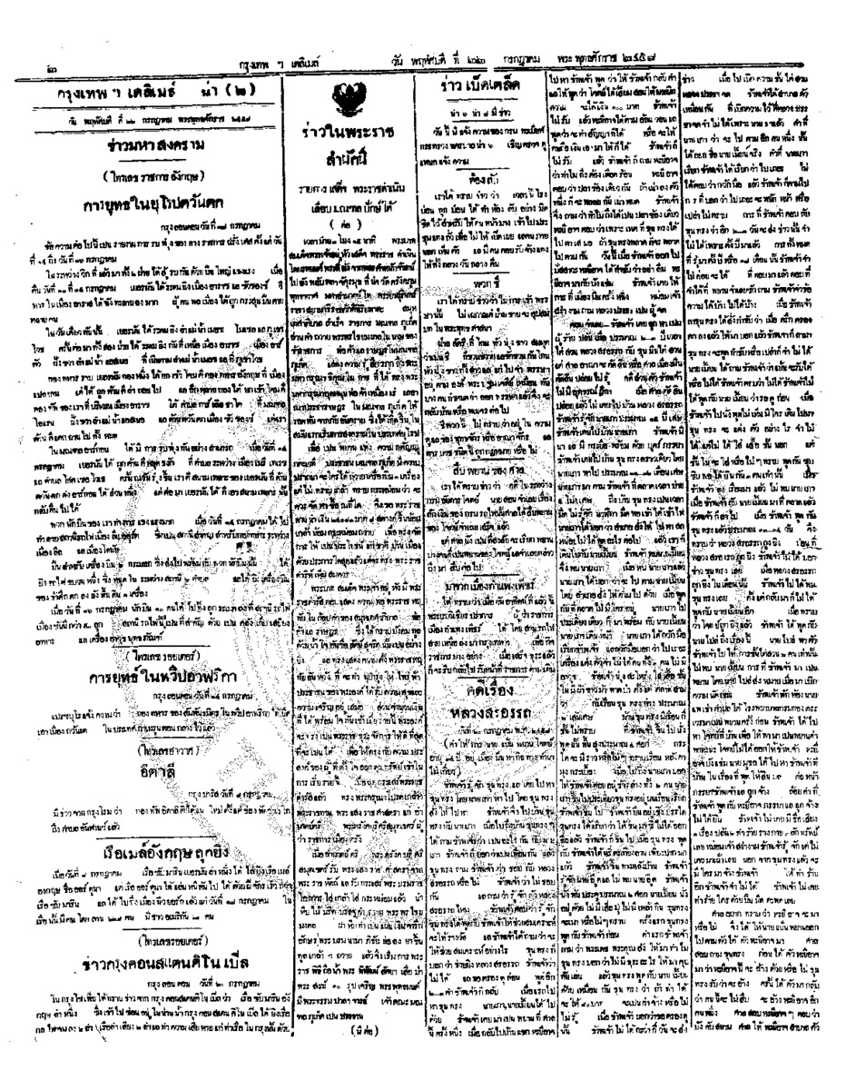 หนังสือพิมพ์กรุงเทพเดลิเมล์ ปีที่ 6 ฉบับที่ 1643 วันที่ 30 กรกฏาคม 2458