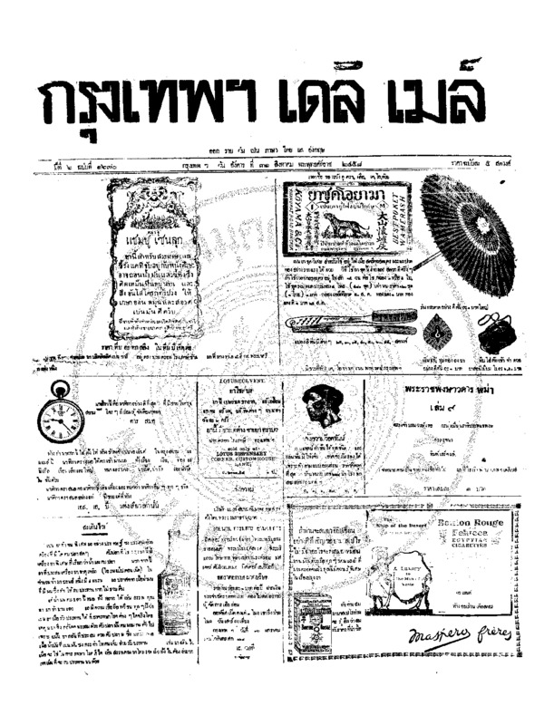 หนังสือพิมพ์กรุงเทพเดลิเมล์ ปีที่ 6 ฉบับที่ 1666 วันที่ 26 สิงหาคม 2458