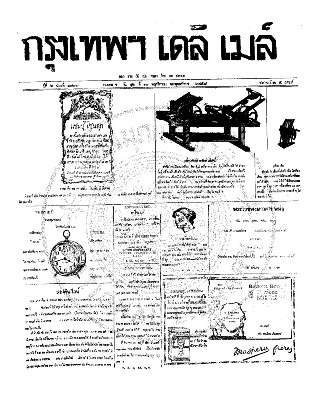 หนังสือพิมพ์กรุงเทพเดลิเมล์ ปีที่ 6 ฉบับที่ 1729 วันที่ 7 พฤศจิกายน 2458