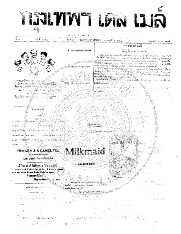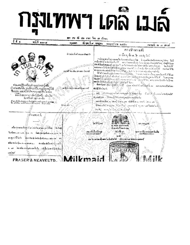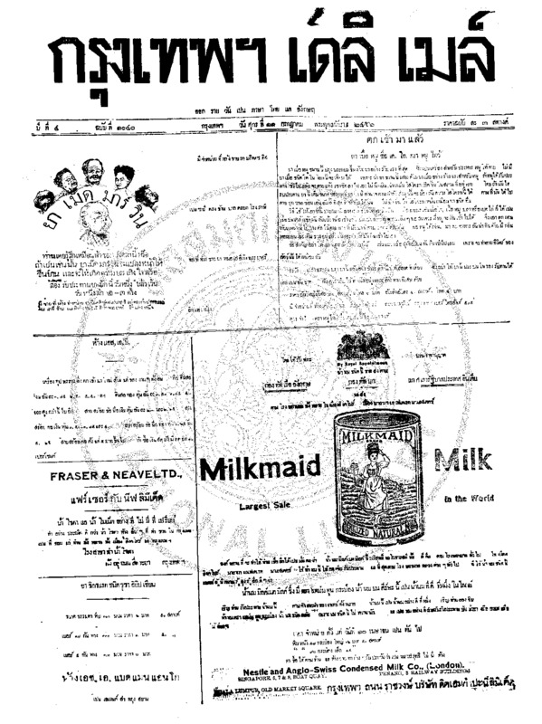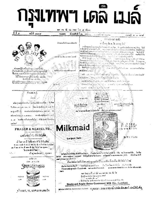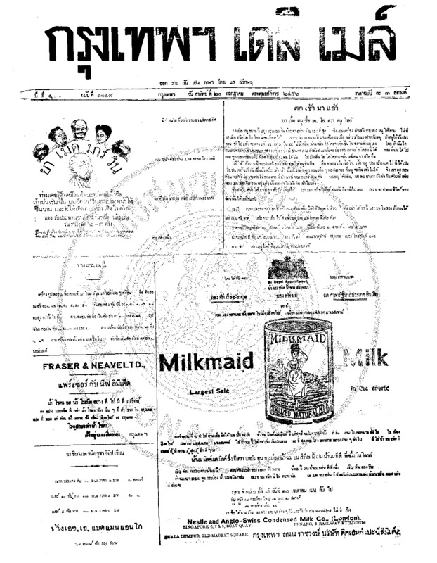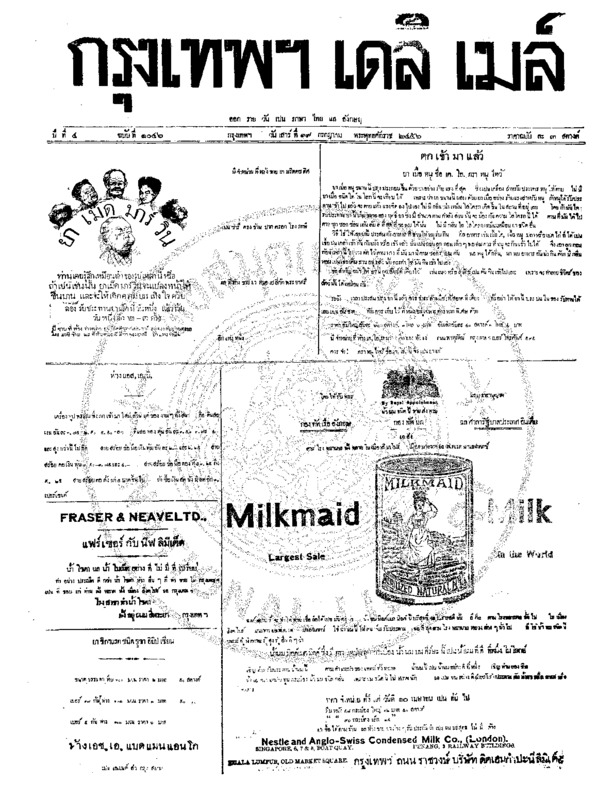 หนังสือพิมพ์กรุงเทพเดลิเมล์ ปีที่ 4 ฉบับที่ 1046 วันที่ 19 กรกฎาคม 2456