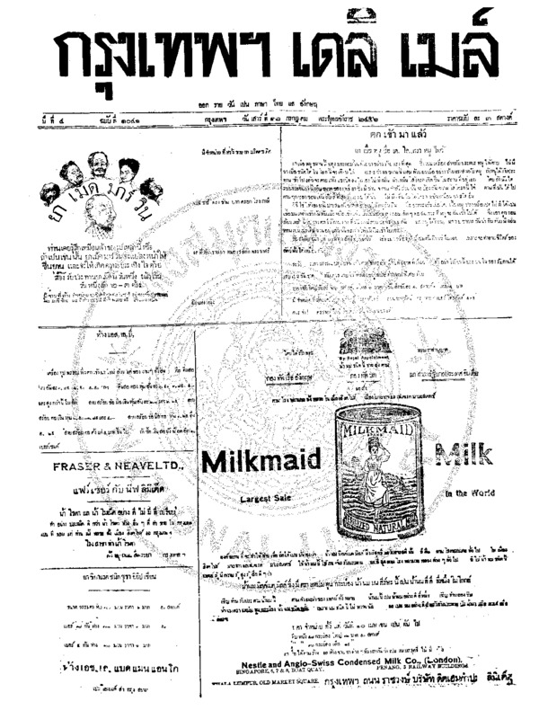 หนังสือพิมพ์กรุงเทพเดลิเมล์ ปีที่ 4 ฉบับที่ 1047 วันที่ 20 กรกฎาคม 2456