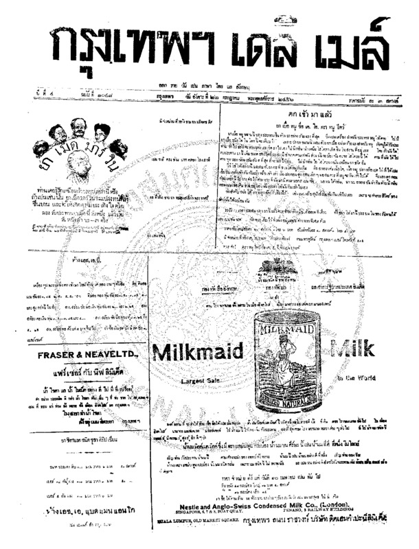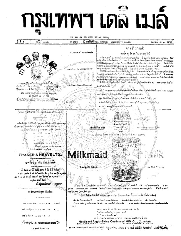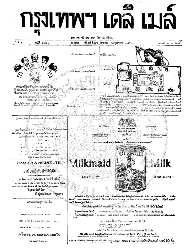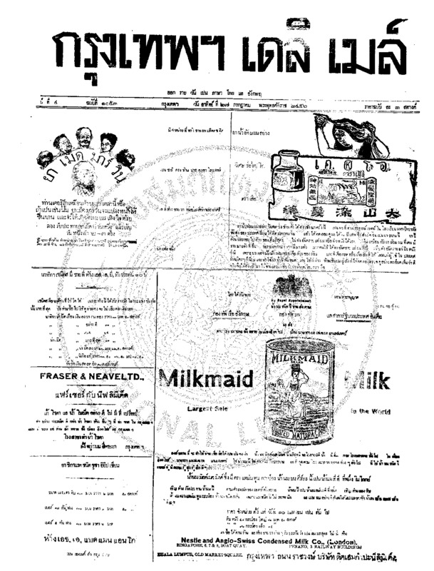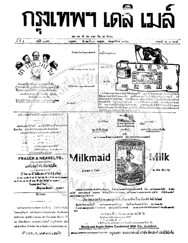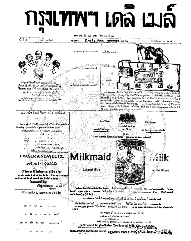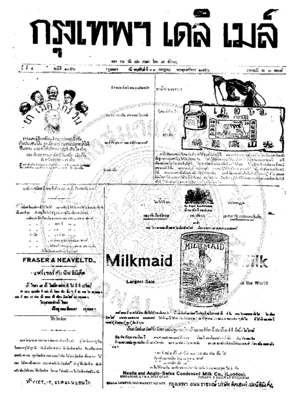 หนังสือพิมพ์กรุงเทพเดลิเมล์ ปีที่ 4 ฉบับที่ 1055 วันที่ 30 กรกฎาคม 2456