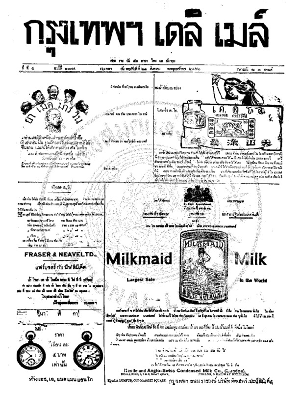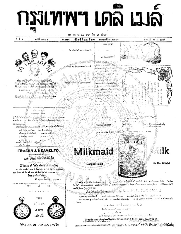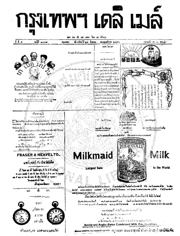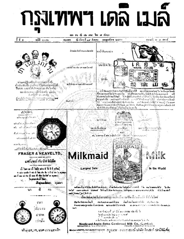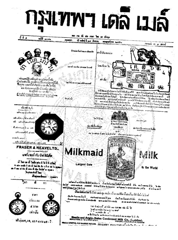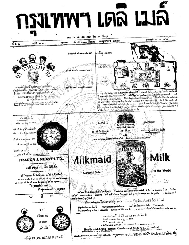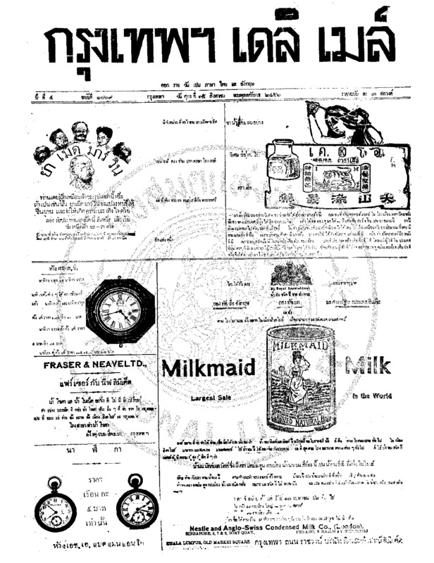 หนังสือพิมพ์กรุงเทพเดลิเมล์ ปีที่ 4 ฉบับที่ 1072 วันที่ 19 สิงหาคม 2456