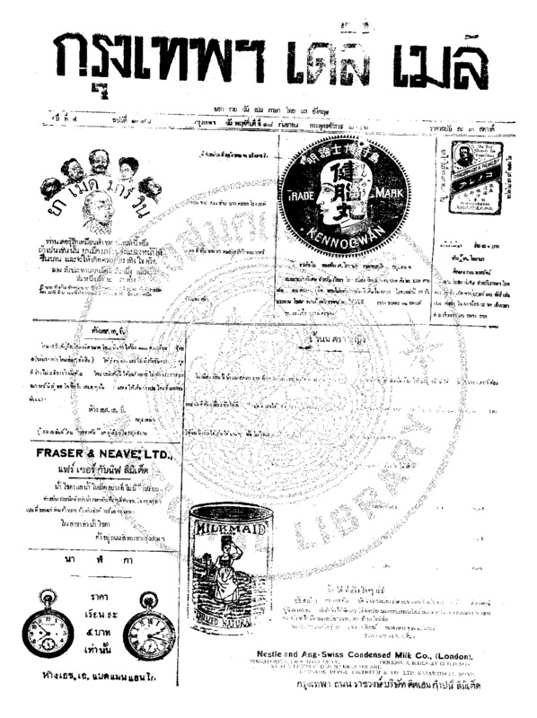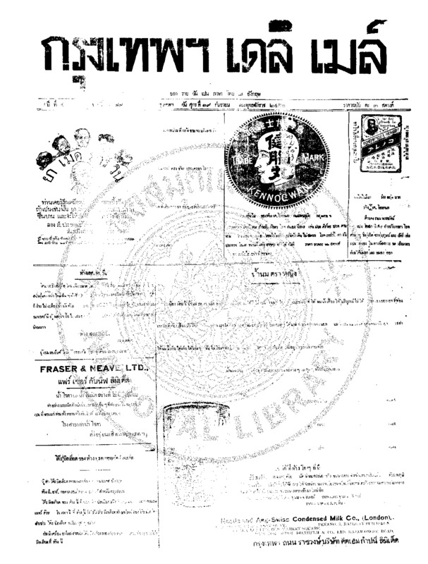 หนังสือพิมพ์กรุงเทพเดลิเมล์ ปีที่ 7 ฉบับที่ 1812 วันที่ 19 กุมภาพันธ์ 2458
