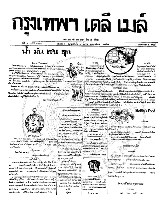 หนังสือพิมพ์กรุงเทพเดลิเมล์ ปีที่ 7 ฉบับที่ 1825 วันที่ 5 มีนาคม 2458