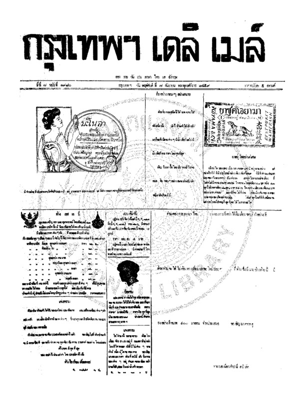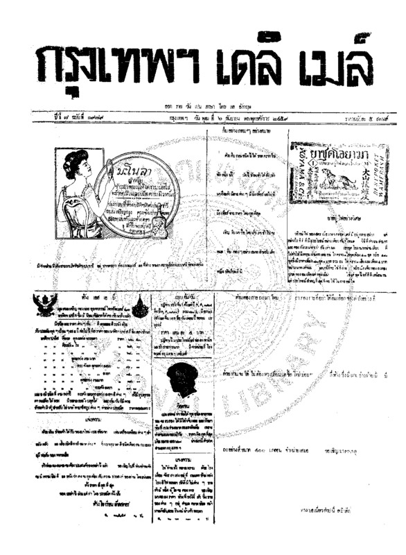 หนังสือพิมพ์กรุงเทพเดลิเมล์ ปีที่ 7 ฉบับที่ 1982 วันที่ 9 กันยายน 2459