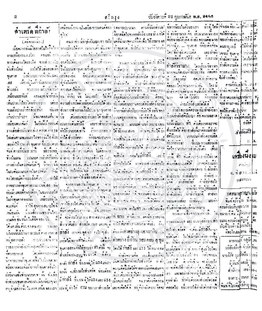 สรีกรุง ปีที่ 23 ฉะบับที่ 5213 วันเสาร์ที่ 27 กุมภาพันธ์ ปี พ.ส. 2486