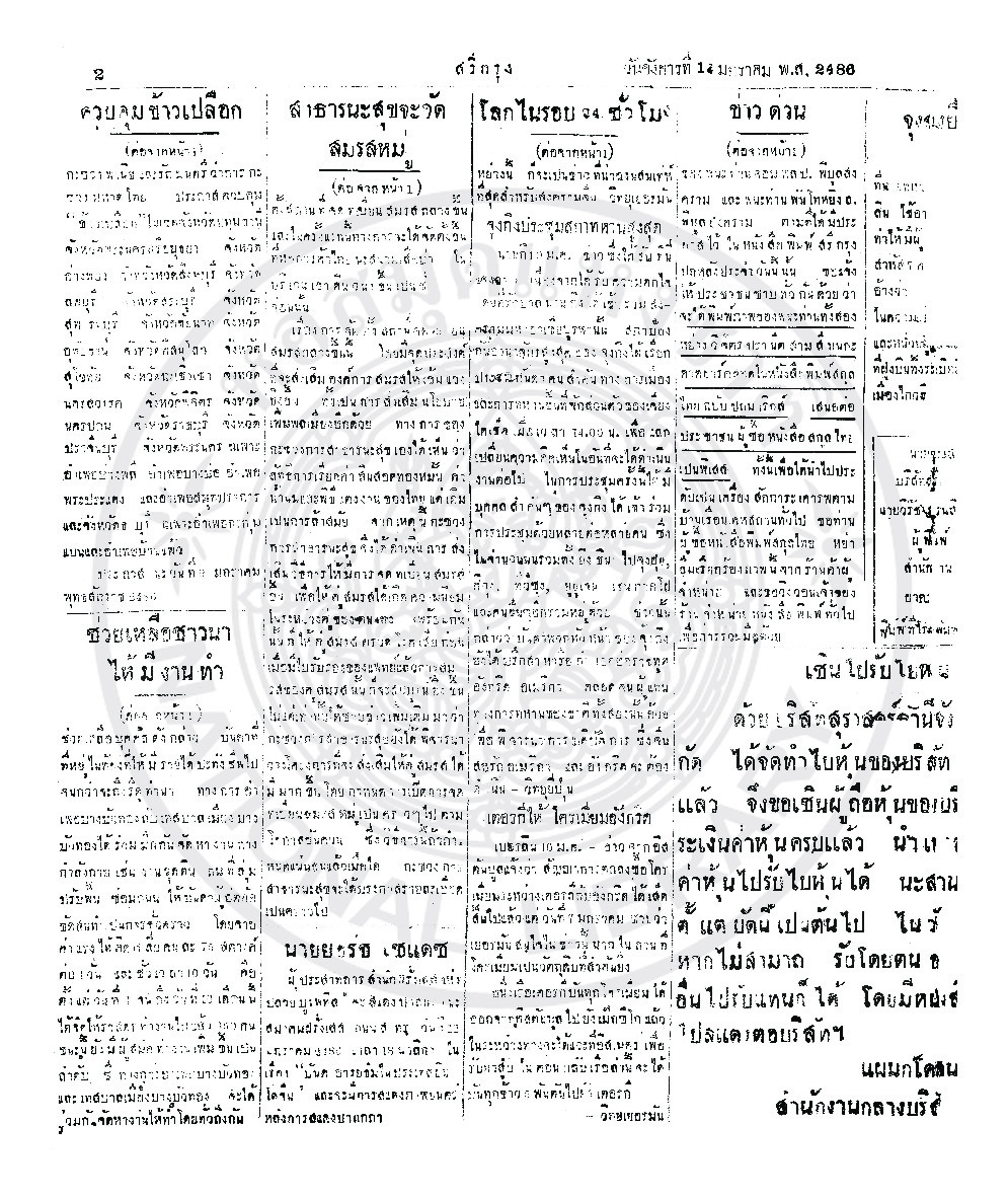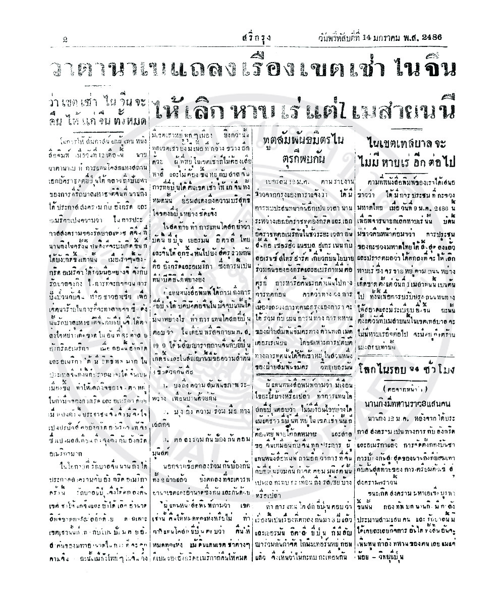 สรีกรุง วันพรึหัสบดีที่ 14 มกราคม ปี พ.ส. 2486