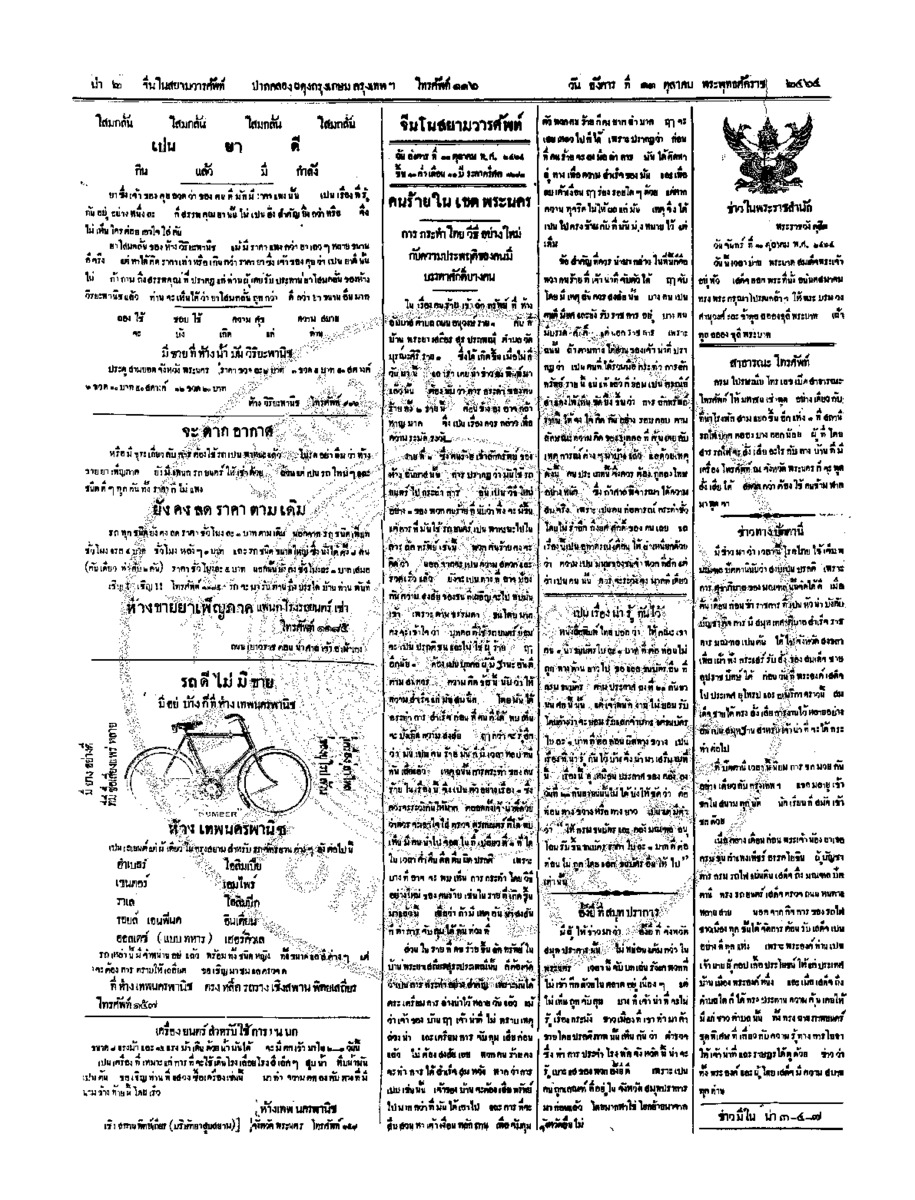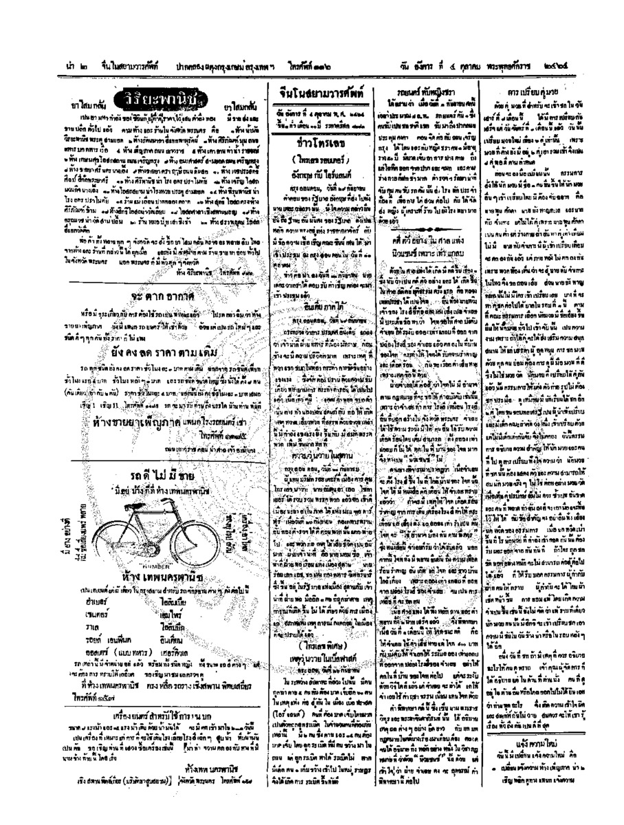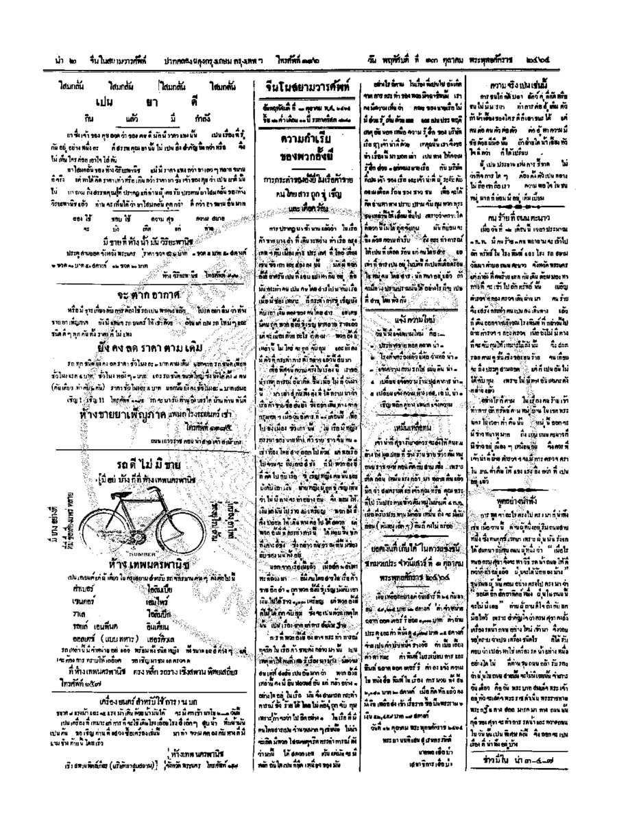 จีนโนสยามวารศัพท์ วันพฤหัศบดีที่ 6 ตุลาคม 2464