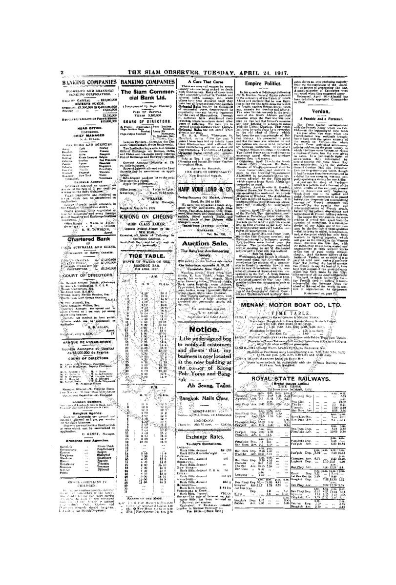 The Siam Observer . Vol.43., No.94 ( April 24, 1917)