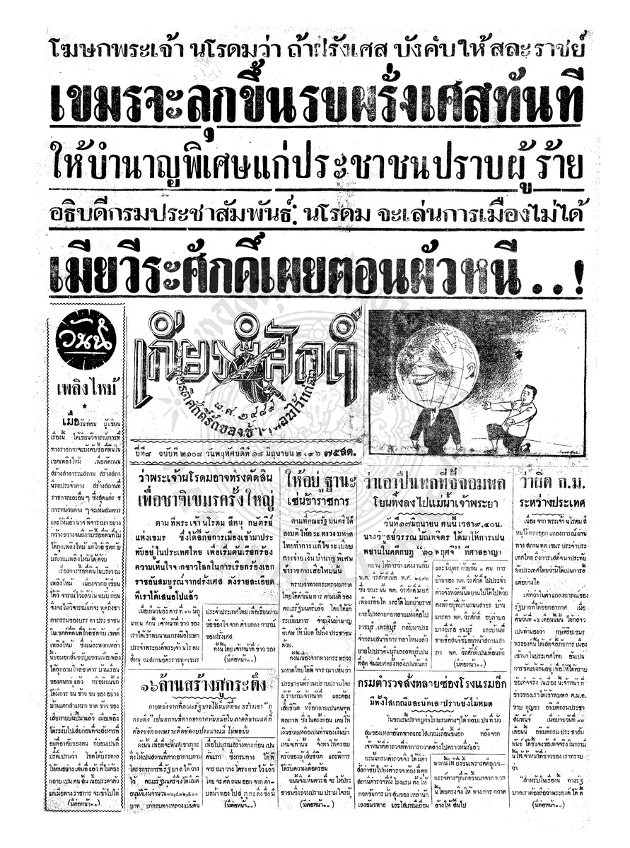 เกียรติศักดิ์ ฉบับที่ 2106 วันที่ 16 มิถุนายน 2496