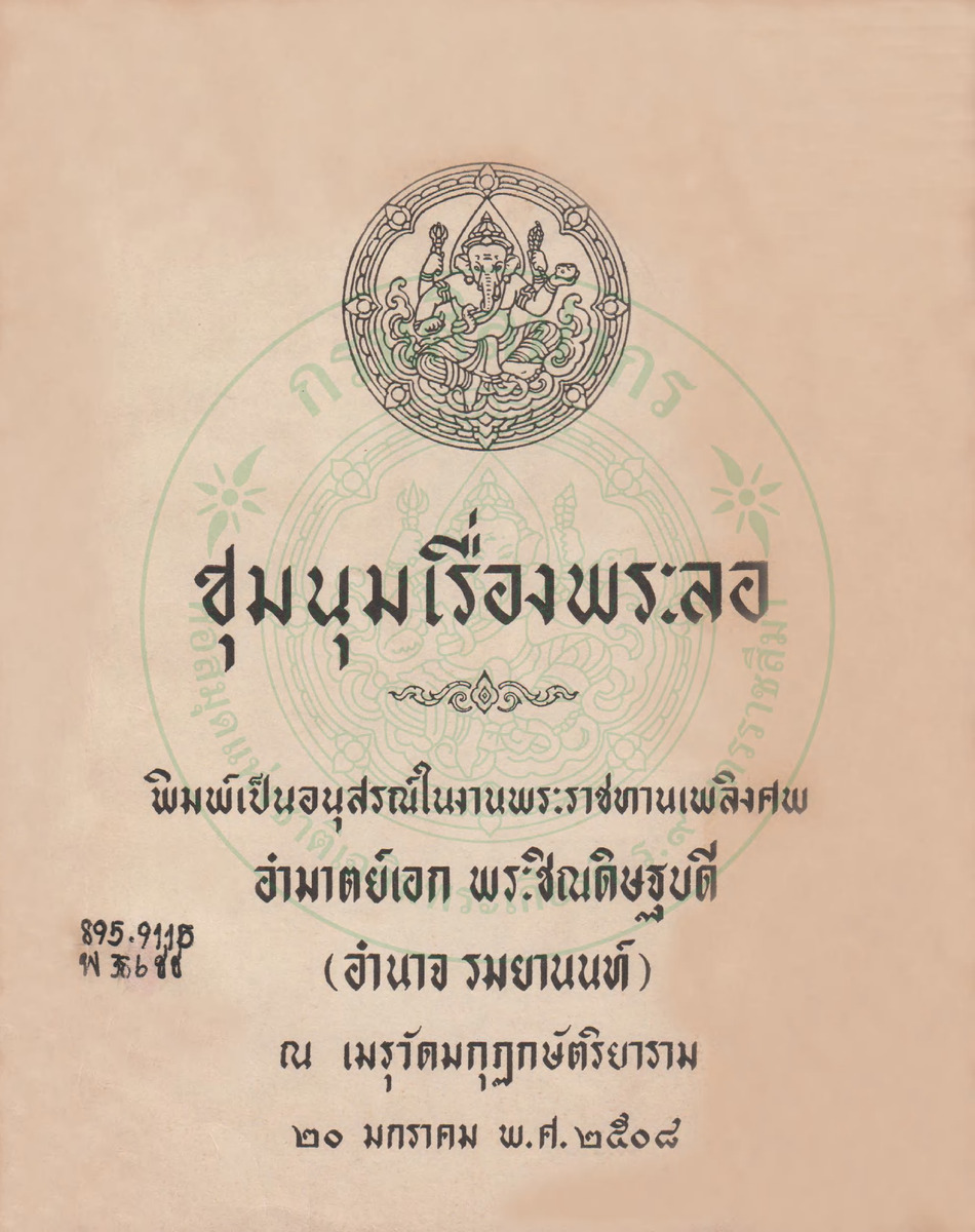 พิมพ์เป็นอนุสรณฺในงานพระราชทานเพลิงศพ อำมาตย์เอก พระชิณดิษฐบดี
