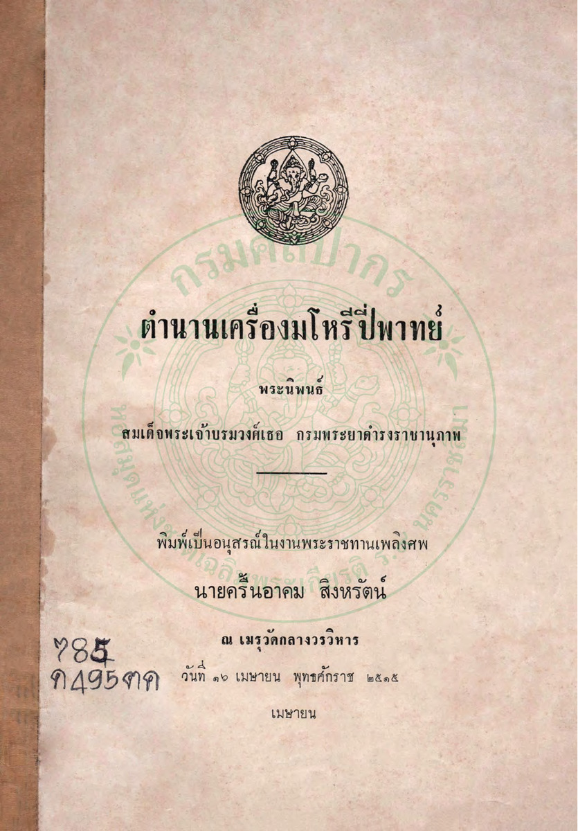 พิมพ์ในงานพระราชทานเพลิงศพ พระวรวงศ์เธอ กรมหมื่นพิทยลาภพฤฒิยากร ณ เมรุพลับพลาอิศริยาภรณ์ วัดเทพศิรินทราวาส 15 ธันวาคม 2517