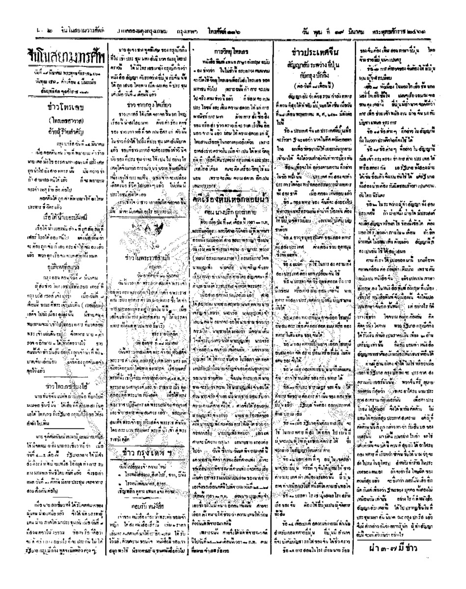 จีนโนสยามวารศัพท์, “จีนโนสยามวารศัพท์ ฉบับที่ 285 วันพุธที่ 19 มีนาคม 2461,” D-Library | National Library of Thailand, accessed March 19, 2026, http://digital.nlt.go.th/dlib/items/show/15640.