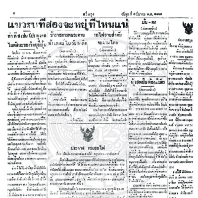 สรีกรุง, “สรีกรุง ปีที่ 23 ฉะบับที่ 5216 วันพุธที่ 3 มีนาคม ปี พ.ส. 2486,” D-Library | National Library of Thailand, accessed October 26, 2025, http://digital.nlt.go.th/dlib/items/show/17456.