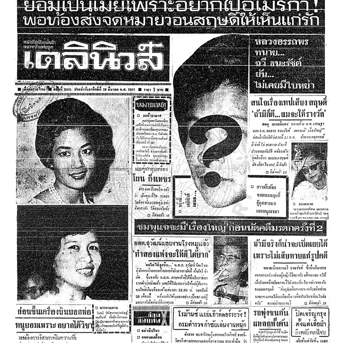 เดลินิวส์, “เดลินิวส์ ฉบับที่ 5331 วันอาทิตย์ที่ 29 มีนาคม 2507,” D-Library | National Library of Thailand, accessed October 12, 2025, http://digital.nlt.go.th/dlib/items/show/19665.