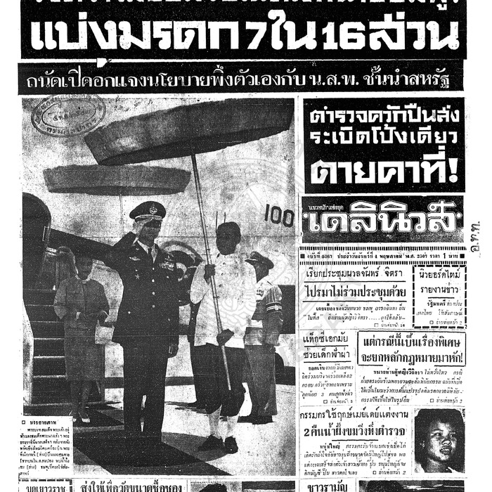 เดลินิวส์, “เดลินิวส์ ฉบับที่ 5367 วันจันทร์ที่ 4 พฤษภาคม 2507,” D-Library | National Library of Thailand, accessed October 11, 2025, http://digital.nlt.go.th/dlib/items/show/19738.