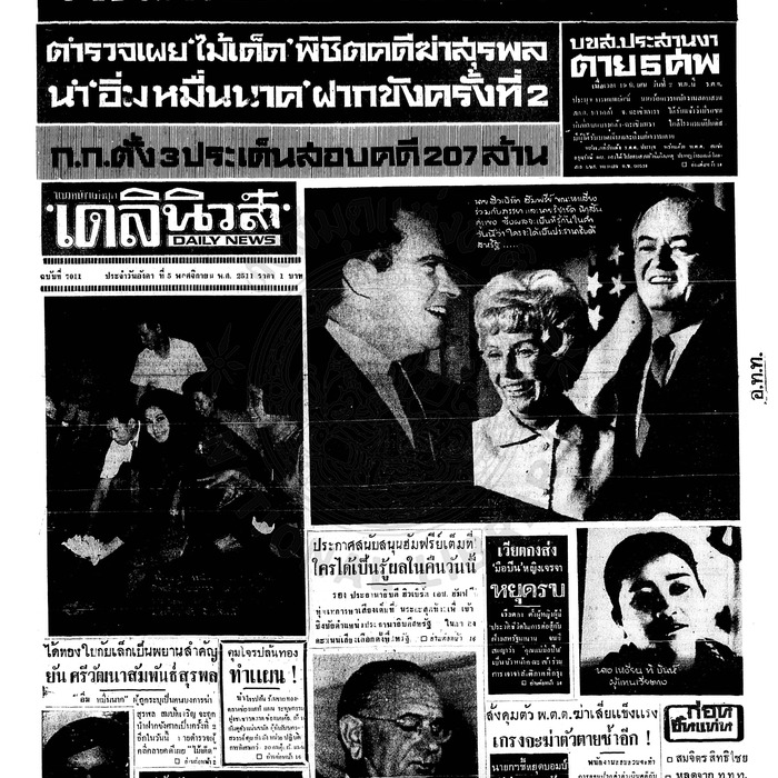 เดลินิวส์ , “เดลินิวส์ ฉบับที่ 7011 วันที่ 5 พฤศจิกายน 2511,” D-Library | National Library of Thailand, accessed October 21, 2025, http://digital.nlt.go.th/dlib/items/show/20396.