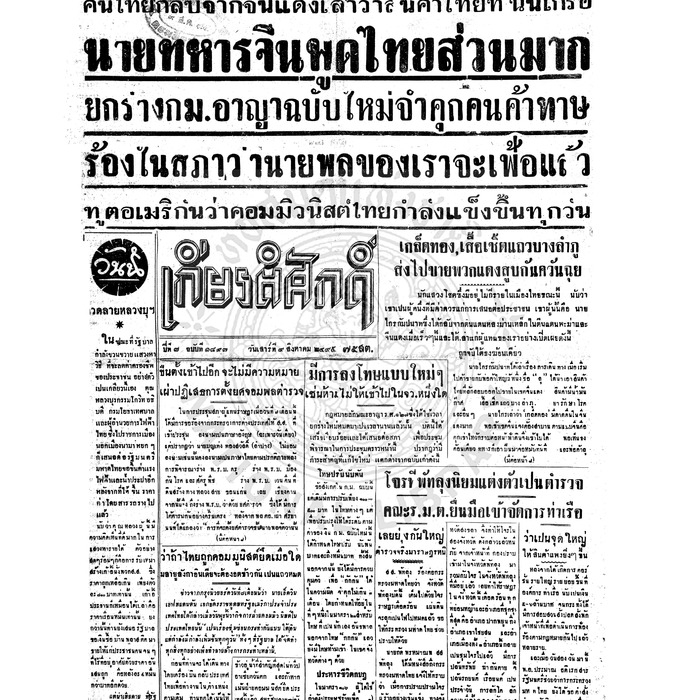 เกียรติศักดิ์, “เกียรติศักดิ์ ฉบับที่ 1897 วันที่ 9 สิงหาคม 2495,” D-Library | National Library of Thailand, accessed November 10, 2025, http://digital.nlt.go.th/dlib/items/show/20830.