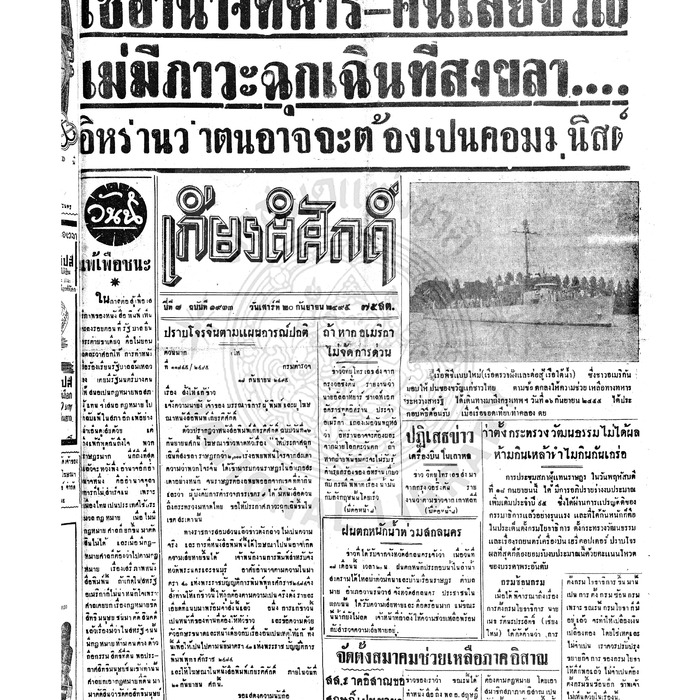 เกียรติศักดิ์, “เกียรติศักดิ์ ฉบับที่ 1933 วันที่ 20 กันยายน 2495,” D-Library | National Library of Thailand, accessed November 10, 2025, http://digital.nlt.go.th/dlib/items/show/20841.