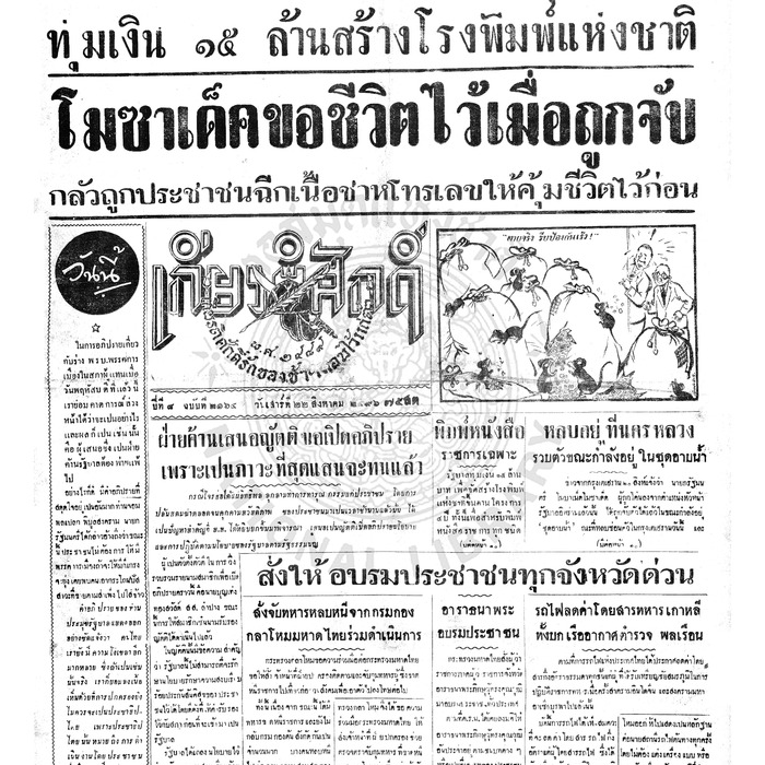 เกียรติศักดิ์, “เกียรติศักดิ์ ฉบับที่ 2164 วันเสาร์ที่ 22 สิงหาคม 2496,” D-Library | National Library of Thailand, accessed January 10, 2026, http://digital.nlt.go.th/dlib/items/show/21058.