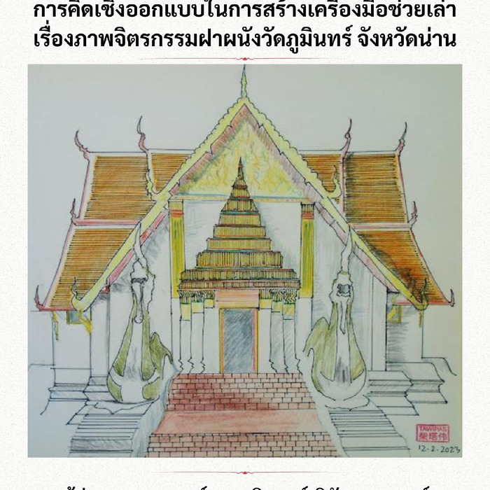 ทวิพาสน์ พิชัยชาญณรงค์, “การคิดเชิงออกแบบในการสร้างเครื่องมือช่วยเล่าเรื่องภาพจิตรกรรมฝาผนังวัดภูมินทร์,” D-Library | National Library of Thailand, accessed February 14, 2026, http://digital.nlt.go.th/dlib/items/show/21280.