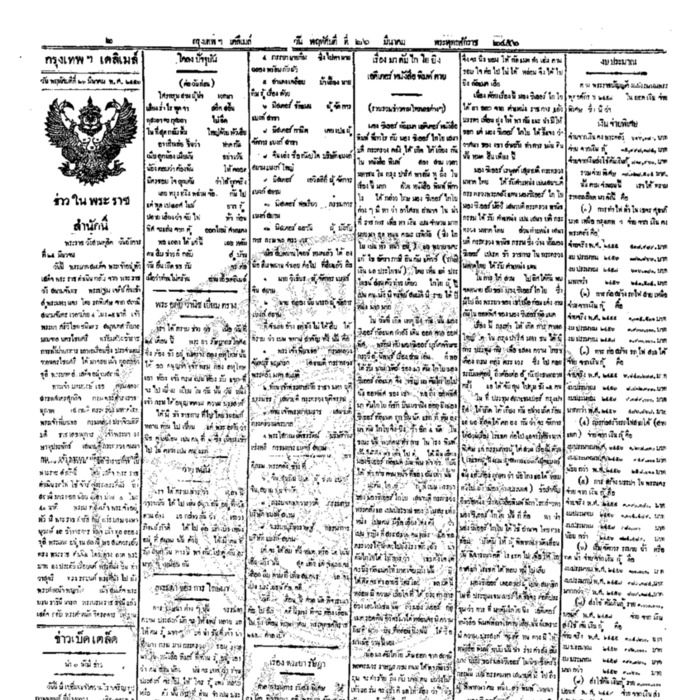 กรุงเทพเดลิเมล์, “หนังสือพิมพ์กรุงเทพเดลิเมล์ ปีที่ 5 ฉบับที่ 1252 วันที่ 26,27 มีนาคม 2456,” D-Library | National Library of Thailand, accessed October 16, 2025, http://digital.nlt.go.th/dlib/items/show/6957.